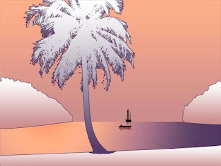 Step 12: That's pretty much it. Add a couple of small boats in a similar way. Just grab the pen tool and trace away. Also, you're not limited to just recreating the same picture with the same colors. Its very trendy to use a limited set of colors and create gradients in your objects. Use your imagination. All I did to the second picture below is add some gradient overlay layer styles as well as a 1 pixel purple stroke. It was very easy to change and the great thing about using the pen tool and shape layers for this is that we can scale it to any size we want without loosing quality.